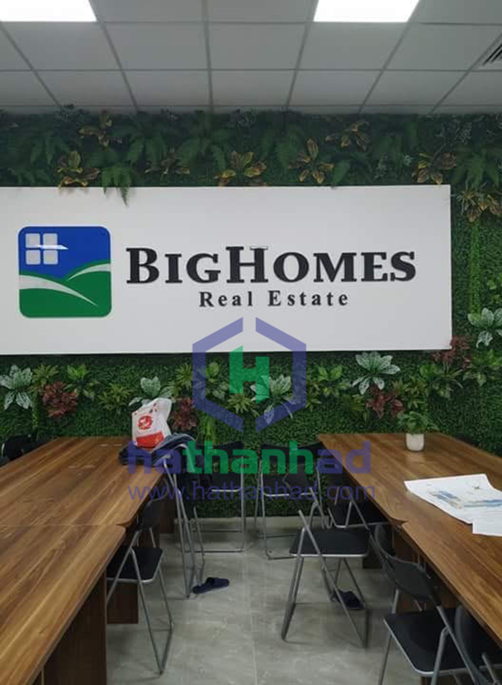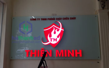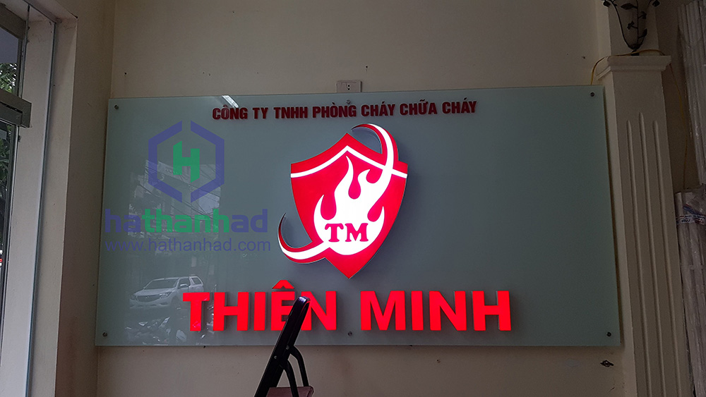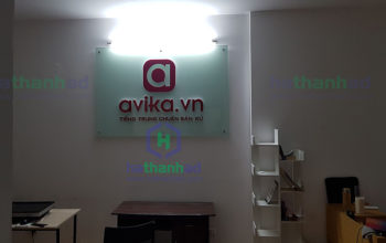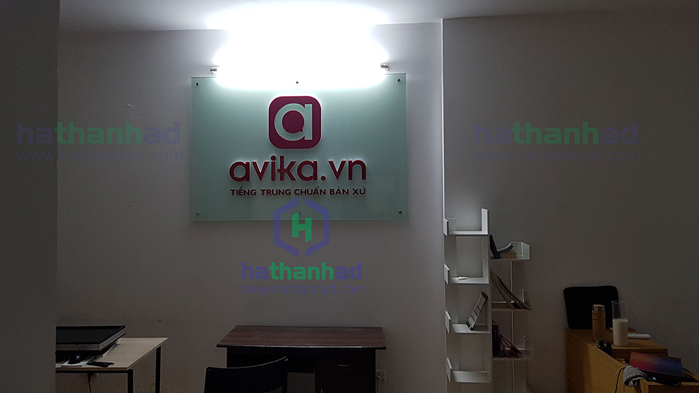 Biển backdrop kính sử dụng rộng rãi trong văn phòng. Thường dụng sau quầy lễ tân mục đích nhận diện thương hiệu của công ty.